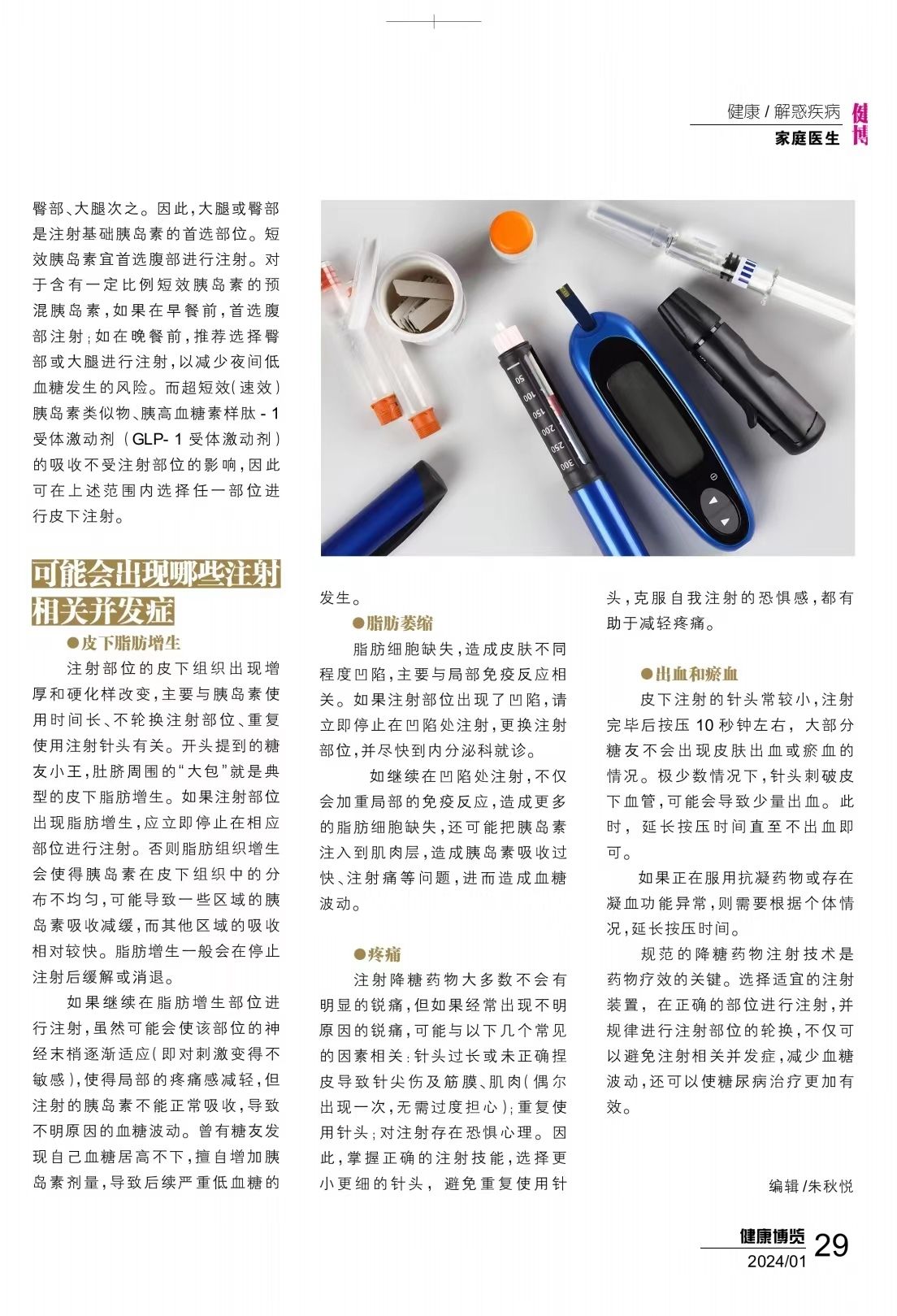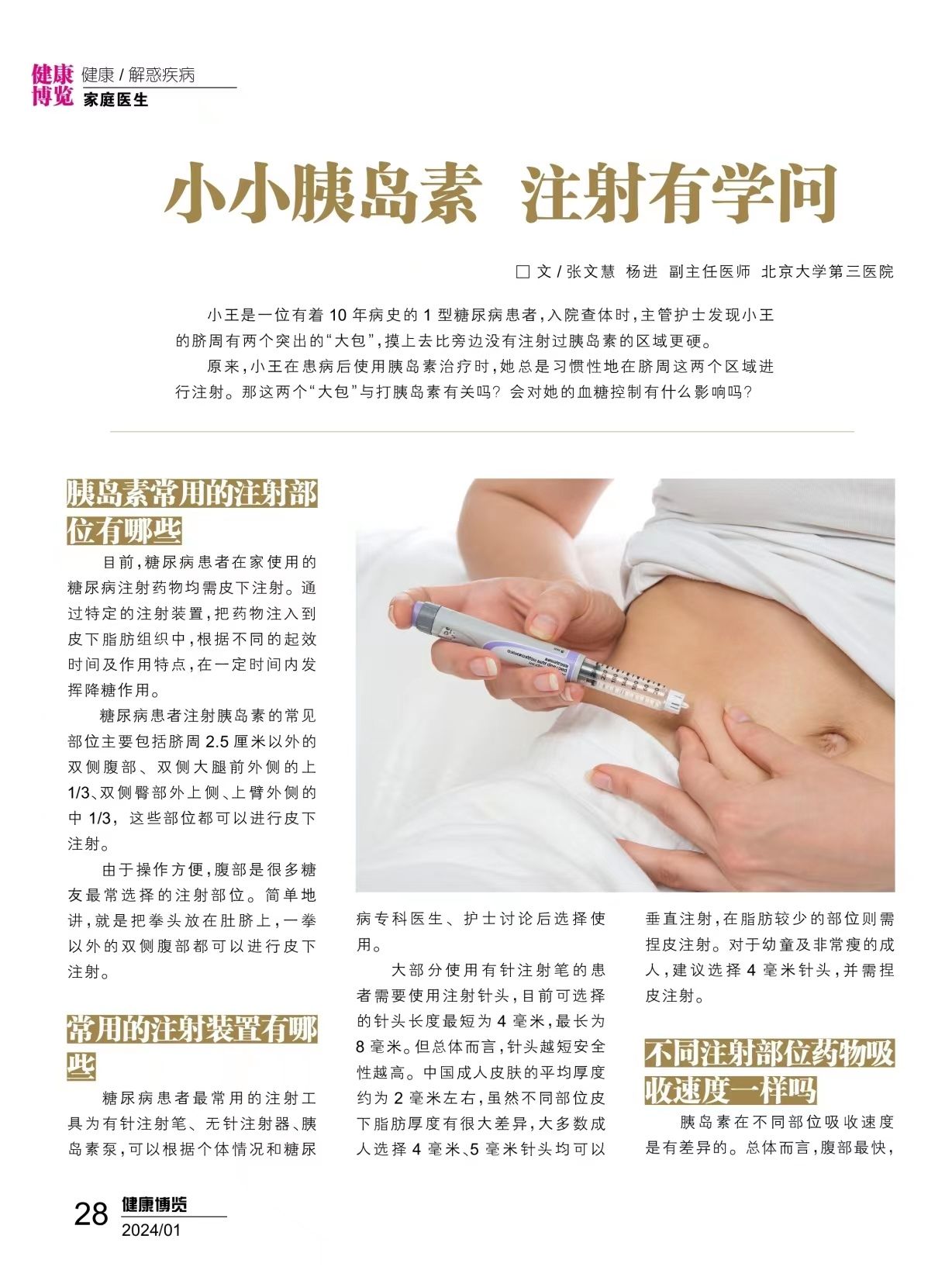 内分泌科科普文章《小小胰岛素 注射有学问》在《健康博览》杂志上刊登