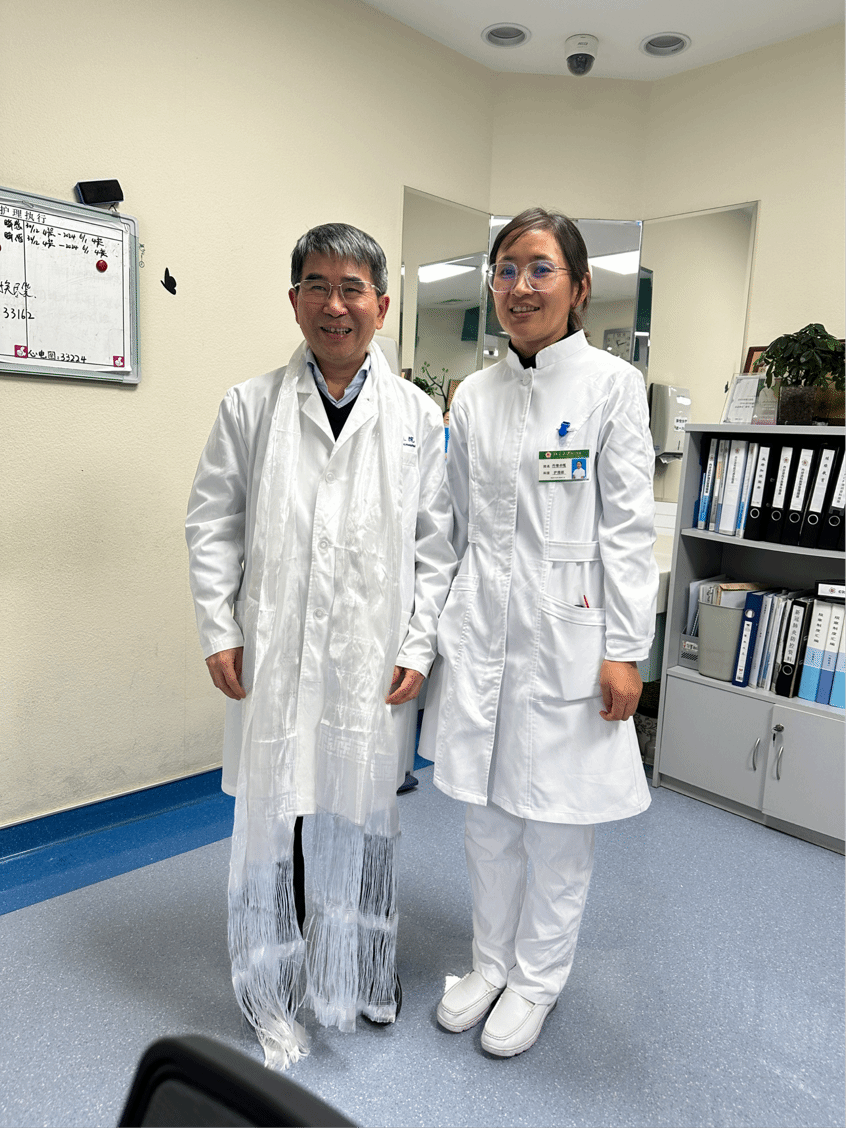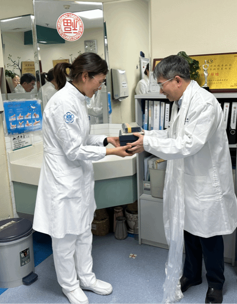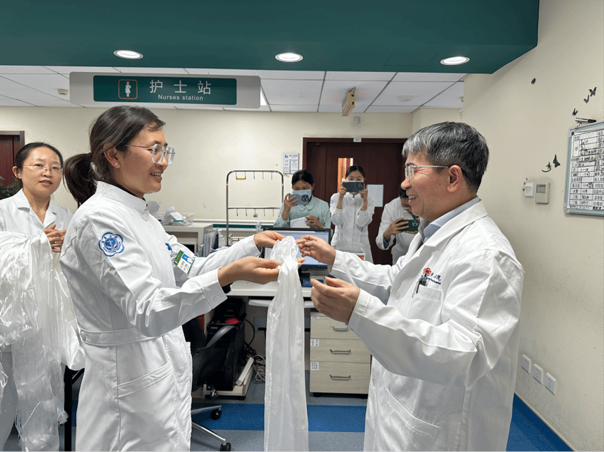 洪天配主任代表内分泌科为卓嘎赠送了北医三院的文创礼物及北医三院65周年纪念胸章,希望她在未来的日子里,能够将所学付诸实践,把三院内分泌科好的经验带回去,用专业的护理知识和技能为藏区患者提供更优质的护理服务。