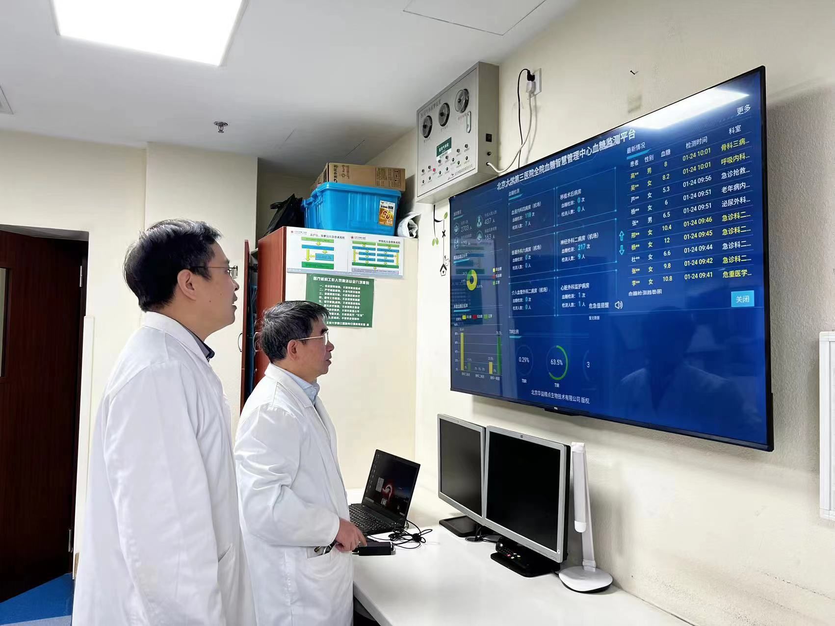 1月23日,内分泌科病房正式启用血糖监测平台中央显示屏幕。