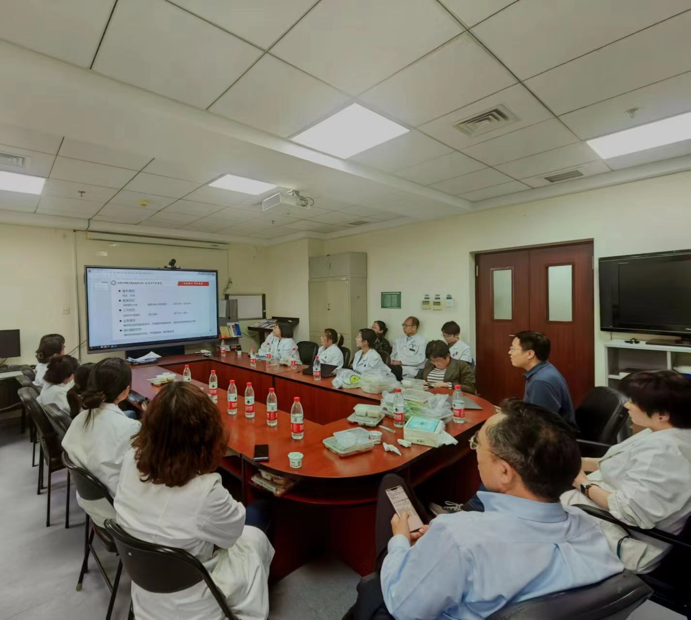 随后,各位进修老师各自准备PPT介绍个人基本情况、业务情况及进修最感兴趣的专业方向等内容。我科高洪伟教授、杨进教授、王海宁教授、肖文华教授、张文慧护士长、田勍教授等核心组成员及刘爱华教授、刘烨教授及病房主治医师与大家座谈。