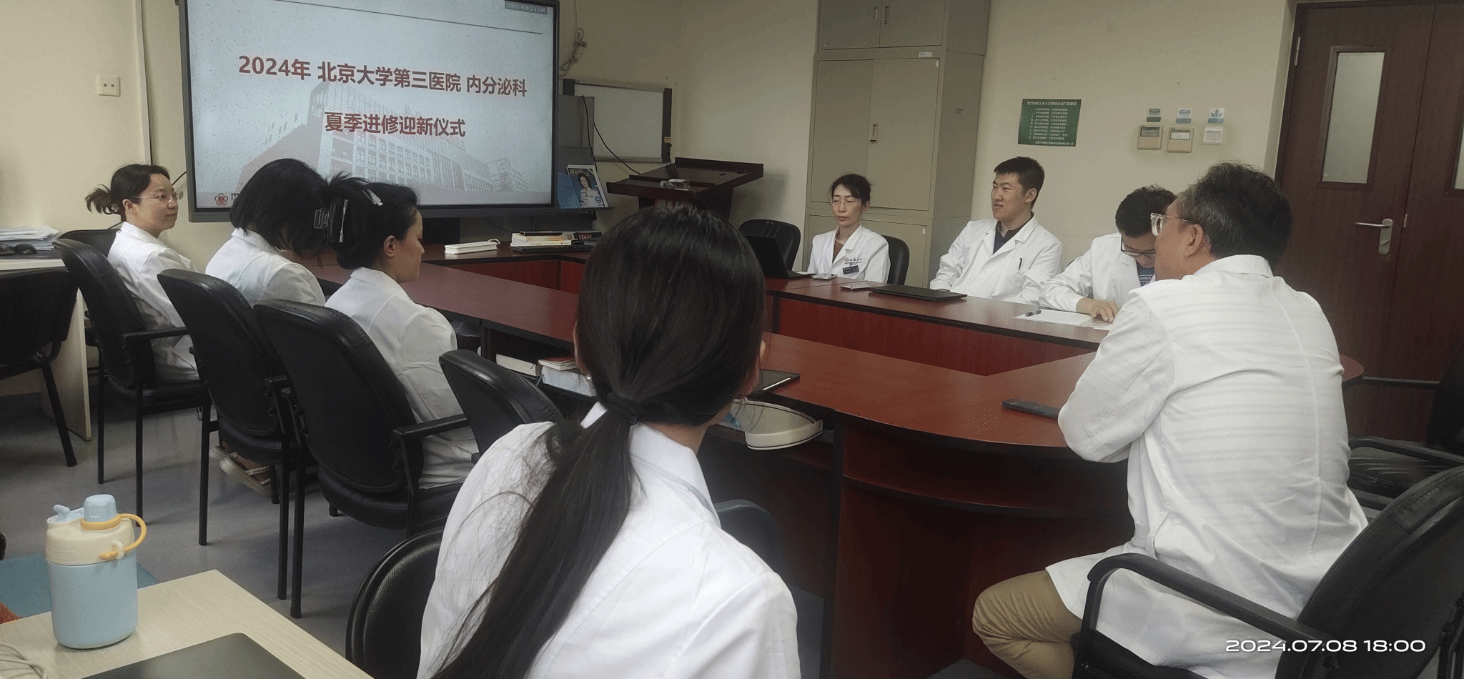 7月8日,内分泌科开展北京大学第三医院内分泌科进修/访学夏季迎新仪式,高洪伟教授代表内分泌科核心组成员开场致辞,随后,刘烨副主任医师向大家介绍科室的发展历程及亚专科建设情况,目前我们科室承担着国家临床终点专科建设项目和国家公立医院改革与高质量发展示范项目的工作,培训和进修教学也是重要的建设任务。目前,内分泌科已针对进修/访学医师常规开展医疗和科研培训教学。