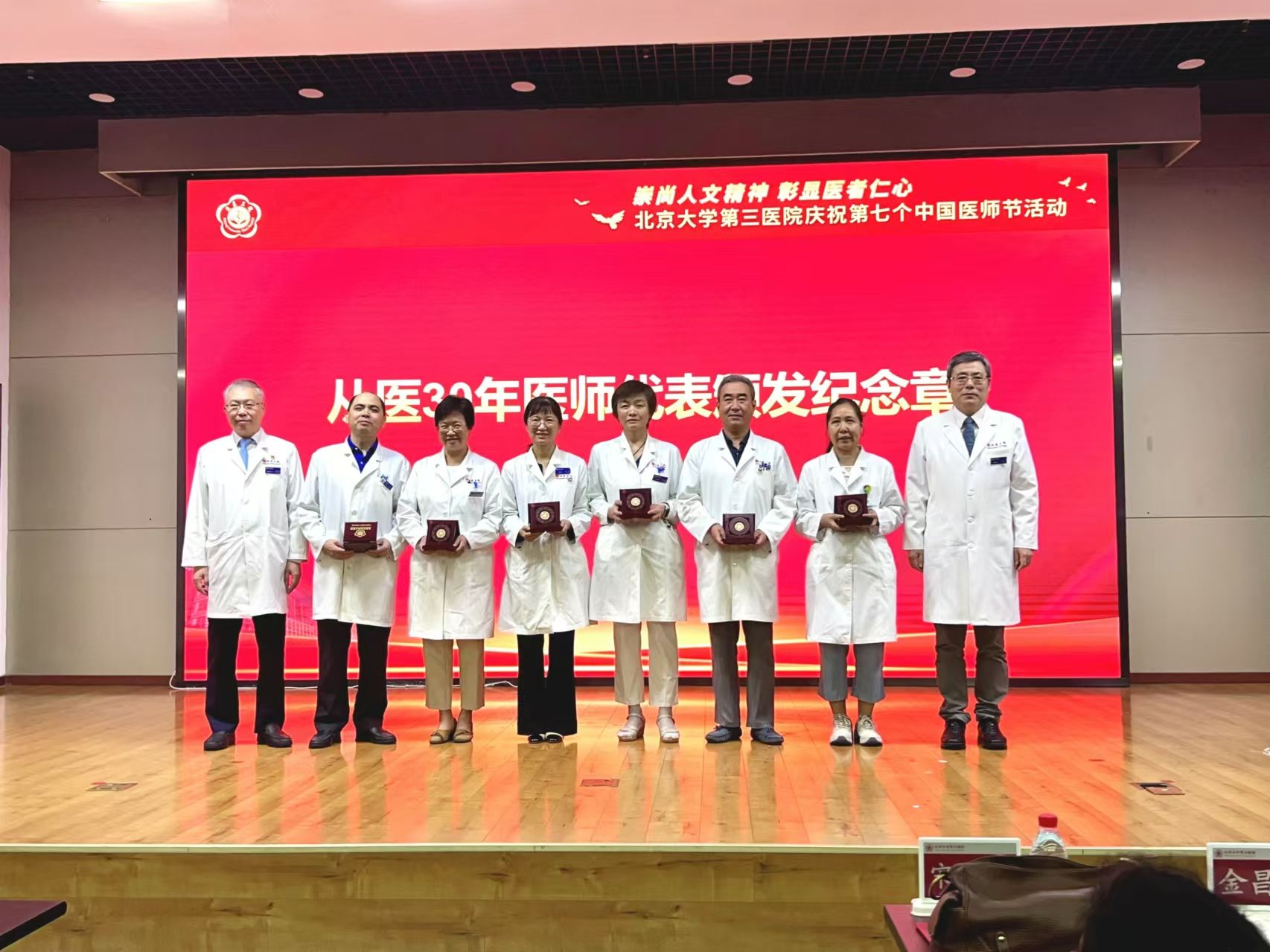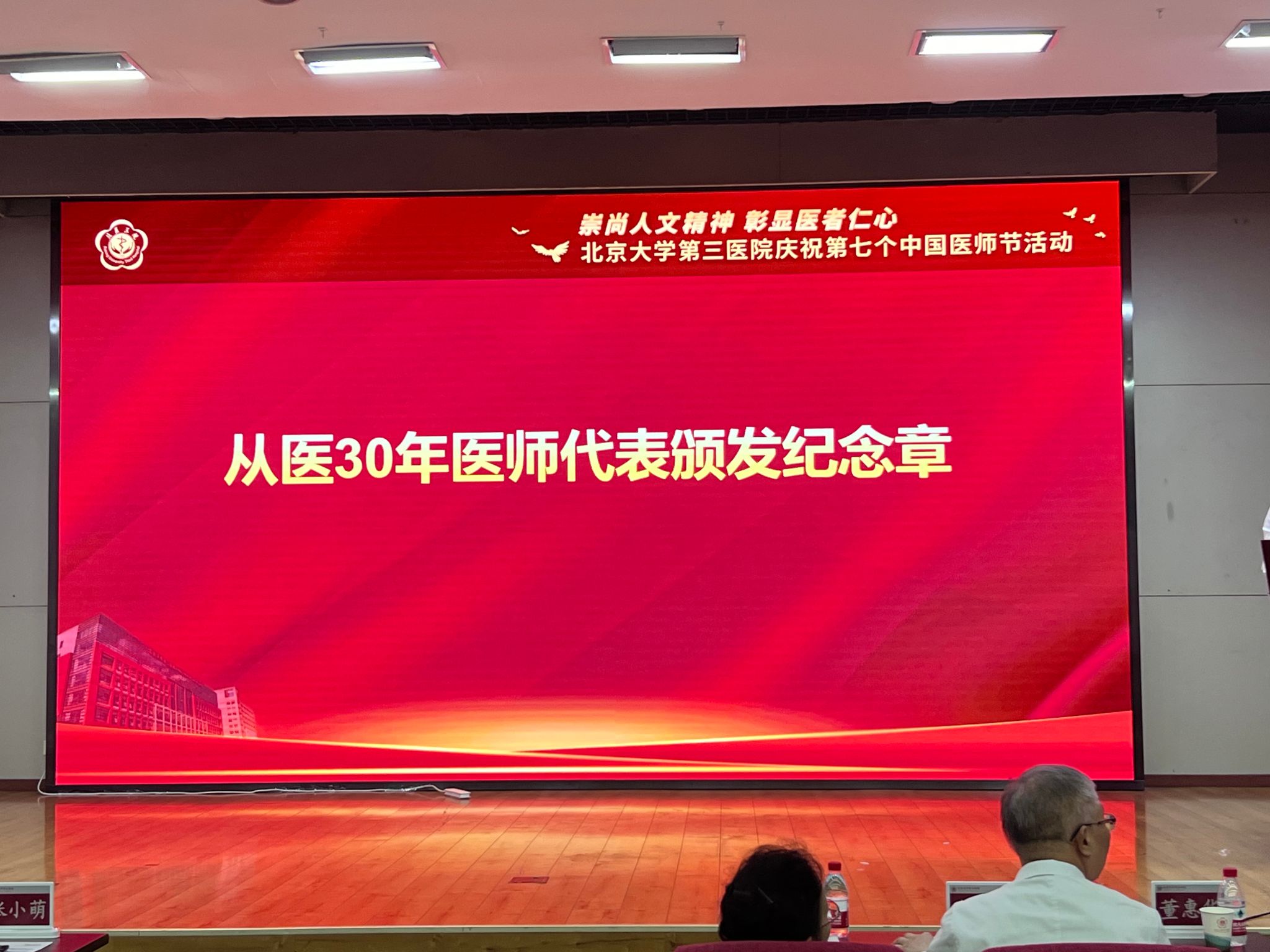 崇尚人文精神彰显医者仁心。今年8月19日是第7个中国医师节。15日下午,北京大学第三医院中国医师节主题活动顺利举行。内分泌科肖文华主任医师代表从医30周年医师接受院领导颁发纪念章。