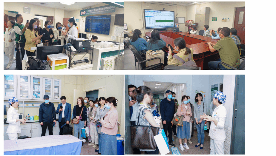 会议讨论结束后,来访嘉宾分别到内分泌科病房及伤口治疗中心实地参观了北医三院智慧血糖管理系统工作过程及伤口中心精细化管理模式,伤口治疗中心护士长金梅、全院血糖智慧管理中心副主任张文慧、内分泌科病房护士长唐溶崧介绍相关工作并演示有关操作,参观嘉宾们与北医三院工作人员进行充分交流。