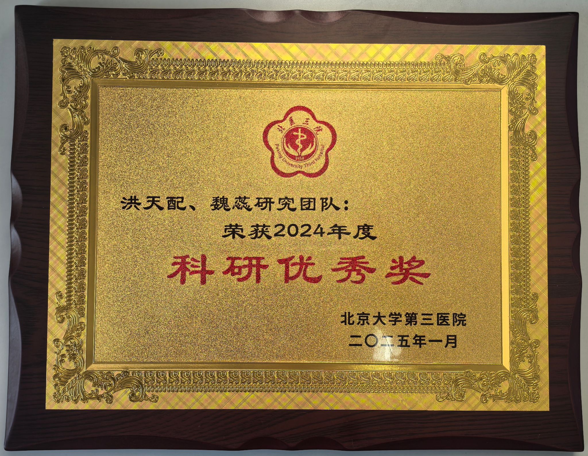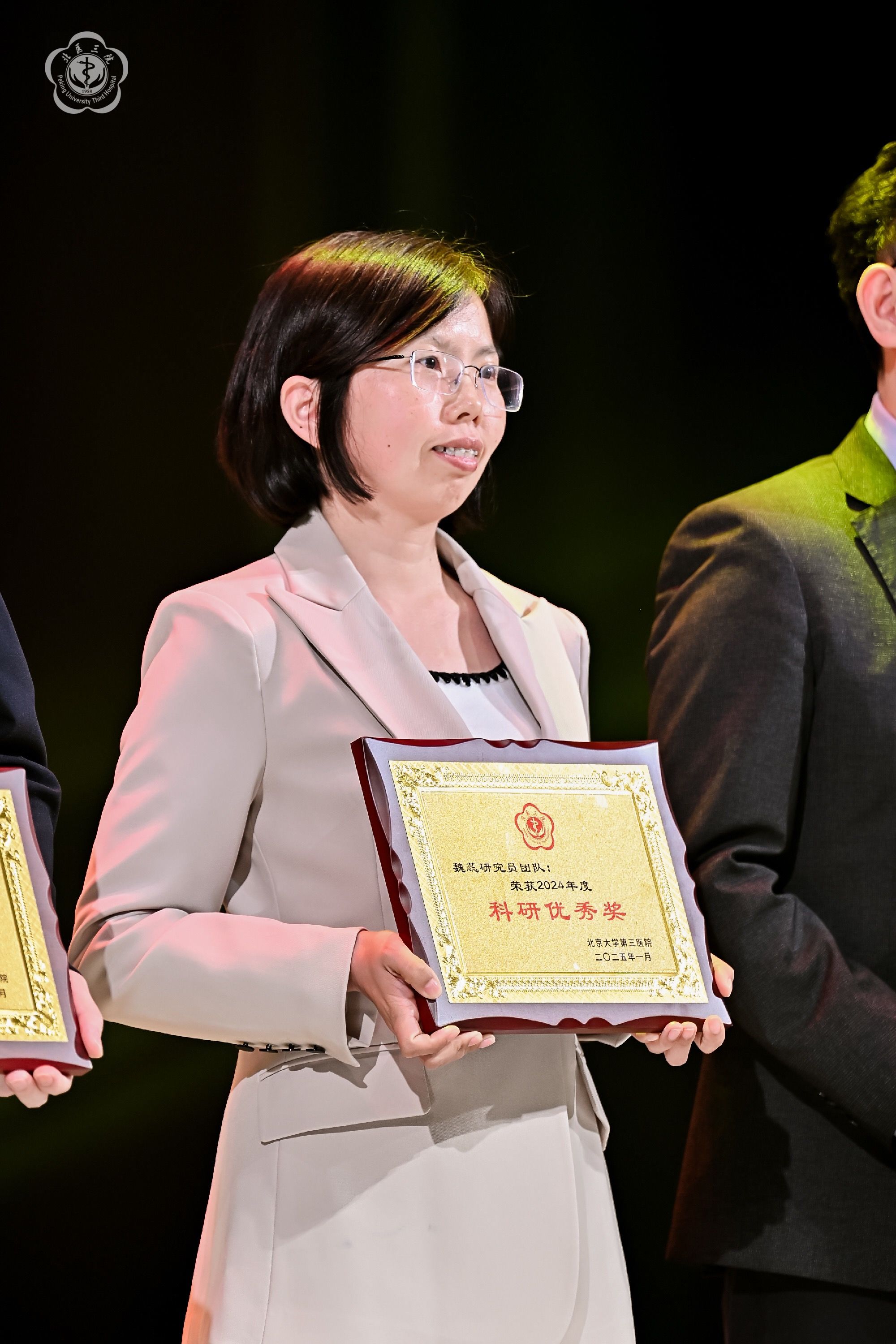 在科研奖表彰颁奖环节,科室主任洪天配教授、魏蕊研究员获得“高水平科研成果奖”。魏蕊代表团队领奖。
