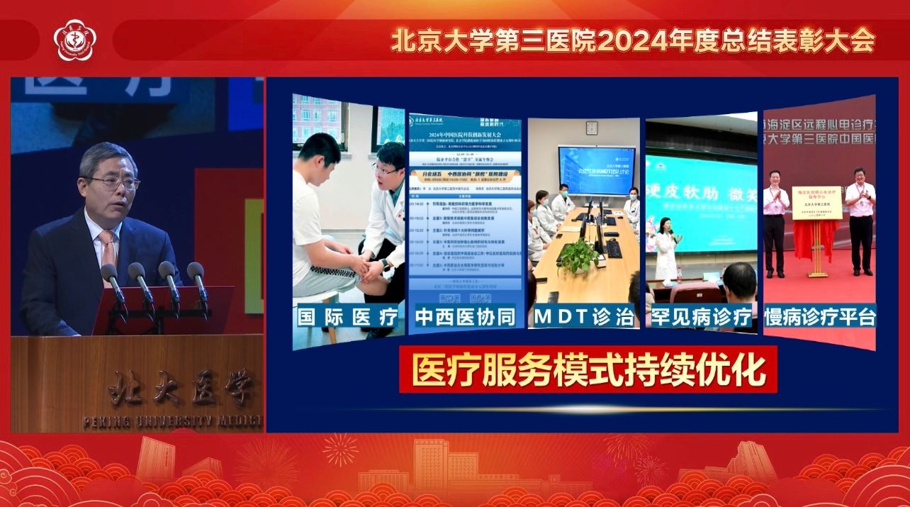 1月10日下午,北京大学第三医院2024年度总结表彰大会在北大医学部会议中心隆重召开。北京市总工会领导、北京大学和医学部领导、北医三院领导班子成员及医院中层干部和职工代表出席大会,大会对2024年度优秀集体、个人进行表彰。