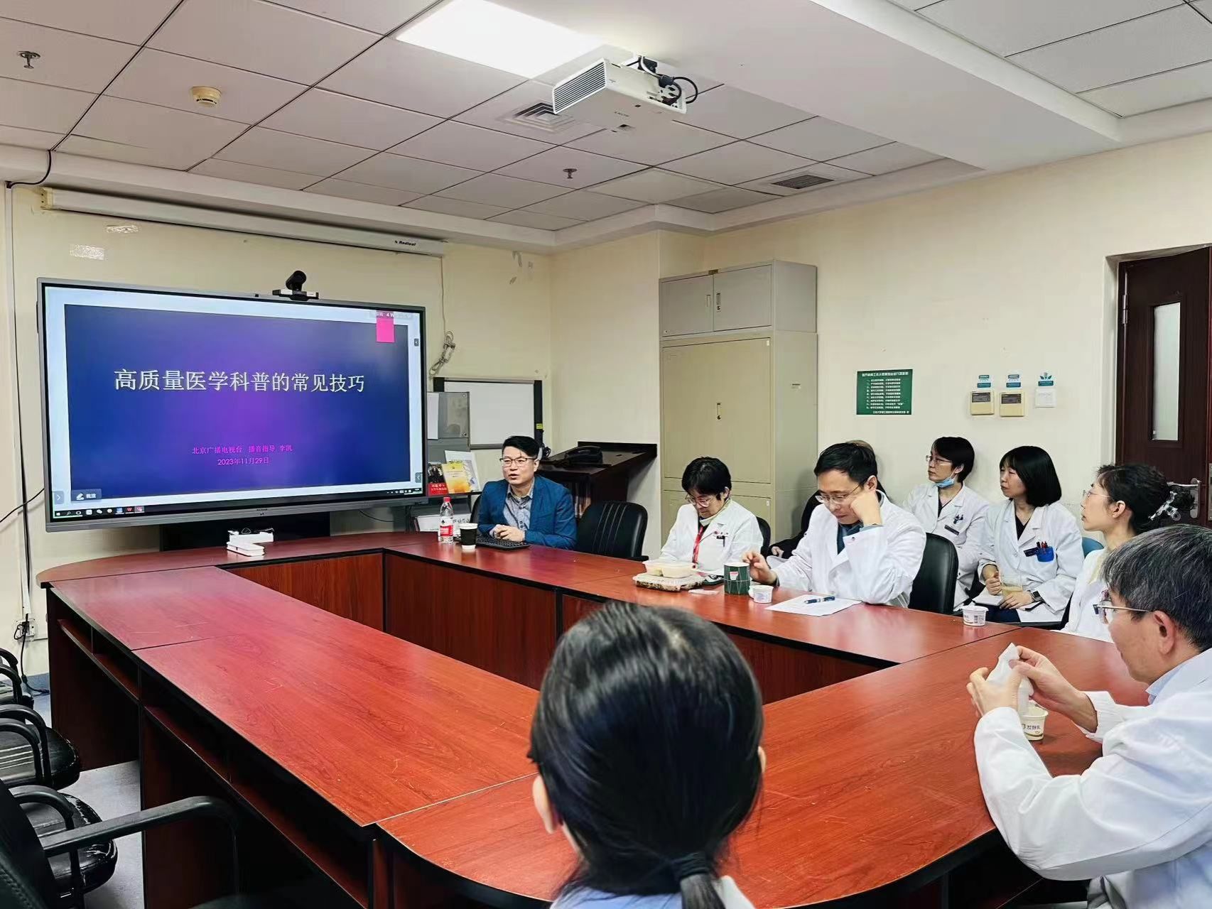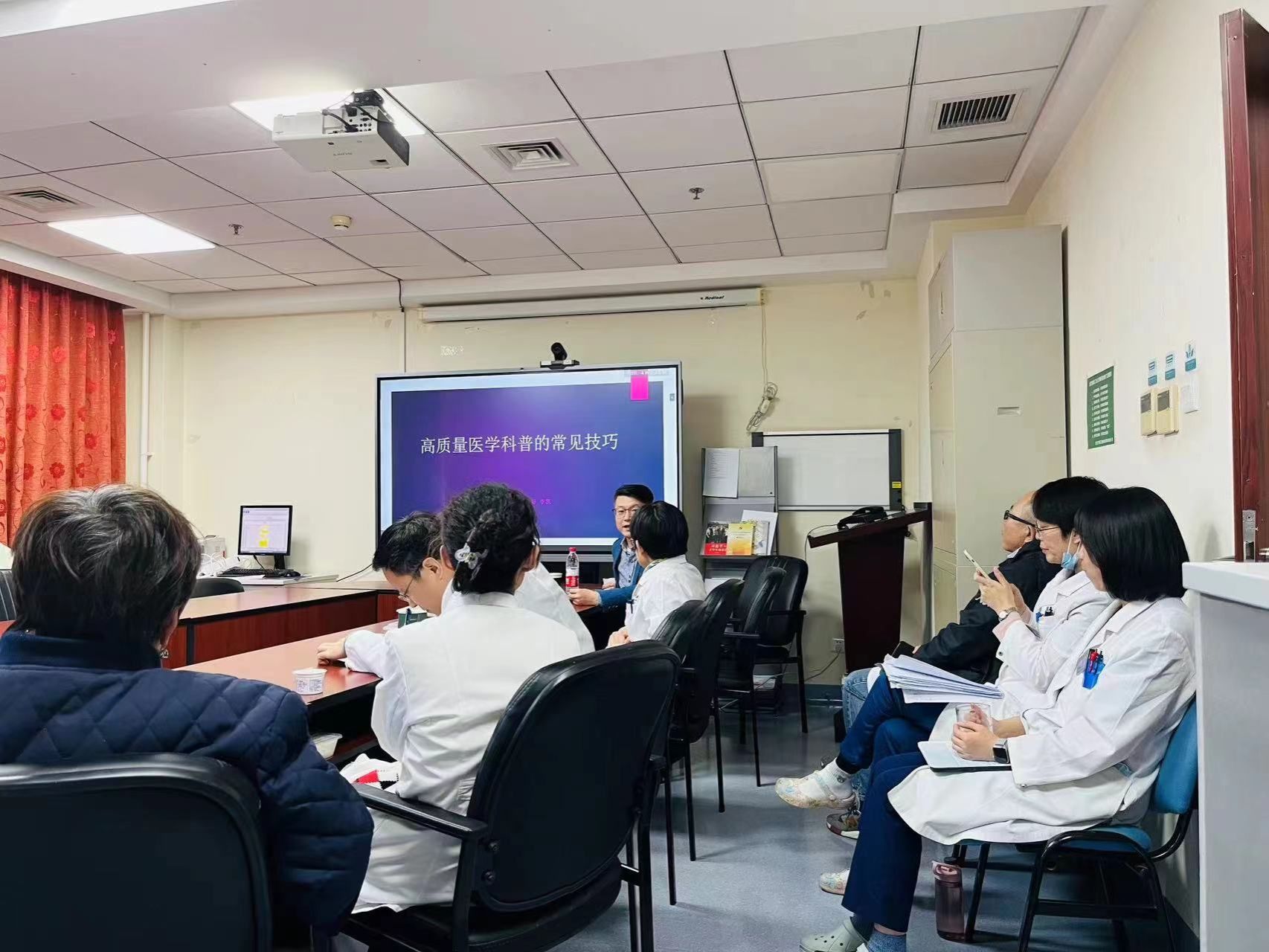 2023年11月29日,党支部和工会小组主办的“泌·律”讲堂第一讲,邀请北京广播电台李凯进行专题讲座,题目为“如何做好大众医学科普”,内分泌科主任洪天配教授、副主任王海宁教授和杨进教授、科室医生和护士积极参加,李凯为大家介绍了高质量医学科普的常见技巧、健康科普内容的常见误区等内容,并进行互动座谈,助推了科室健康医学科普建设工作。