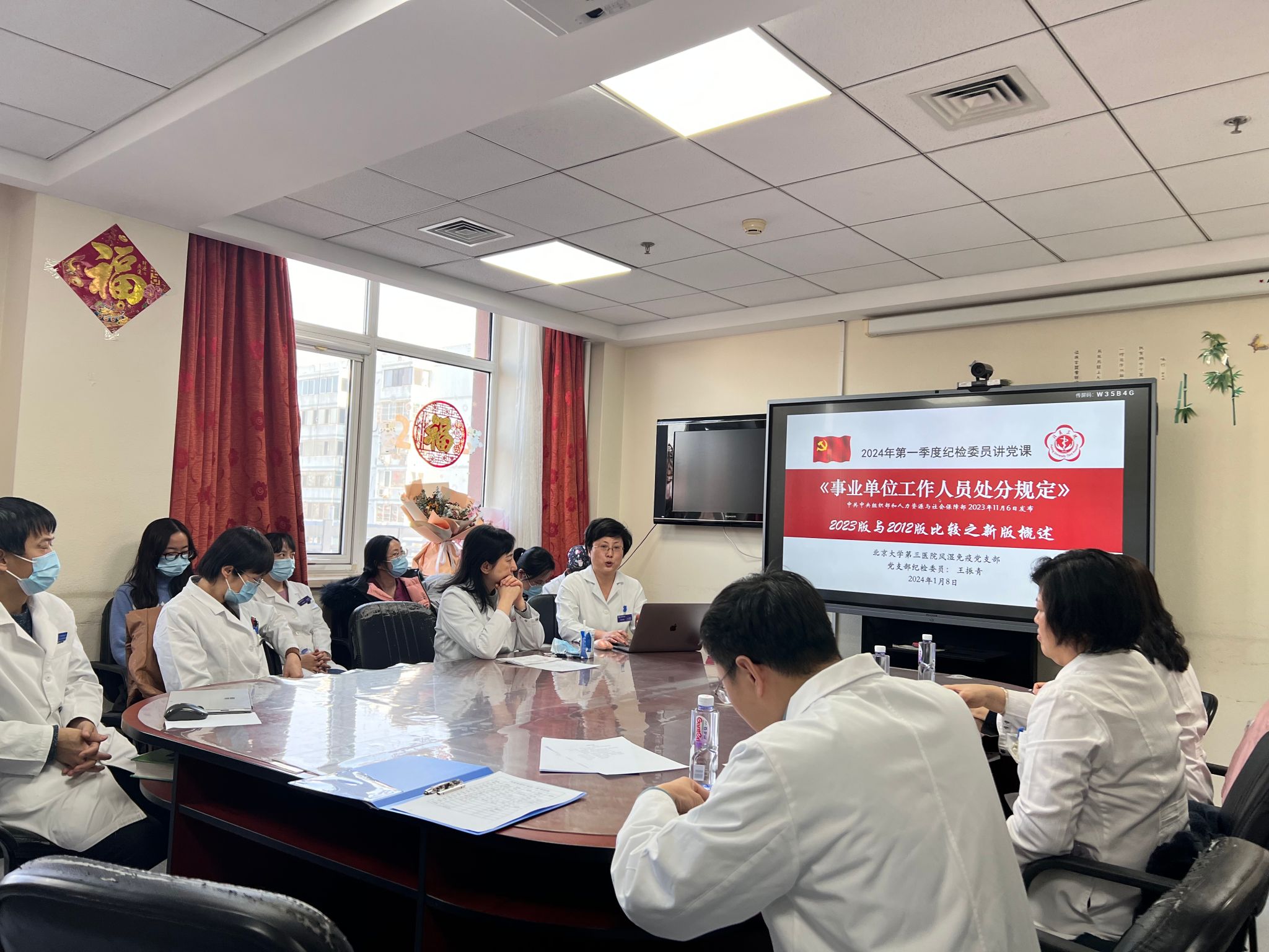 1月8日中午,风湿免疫科党支部和全体科室人员开展2024年第一季度纪检委员讲党课活动,医院组织了纪检监察室、人事处、临床科室组成的督导组参加学习。