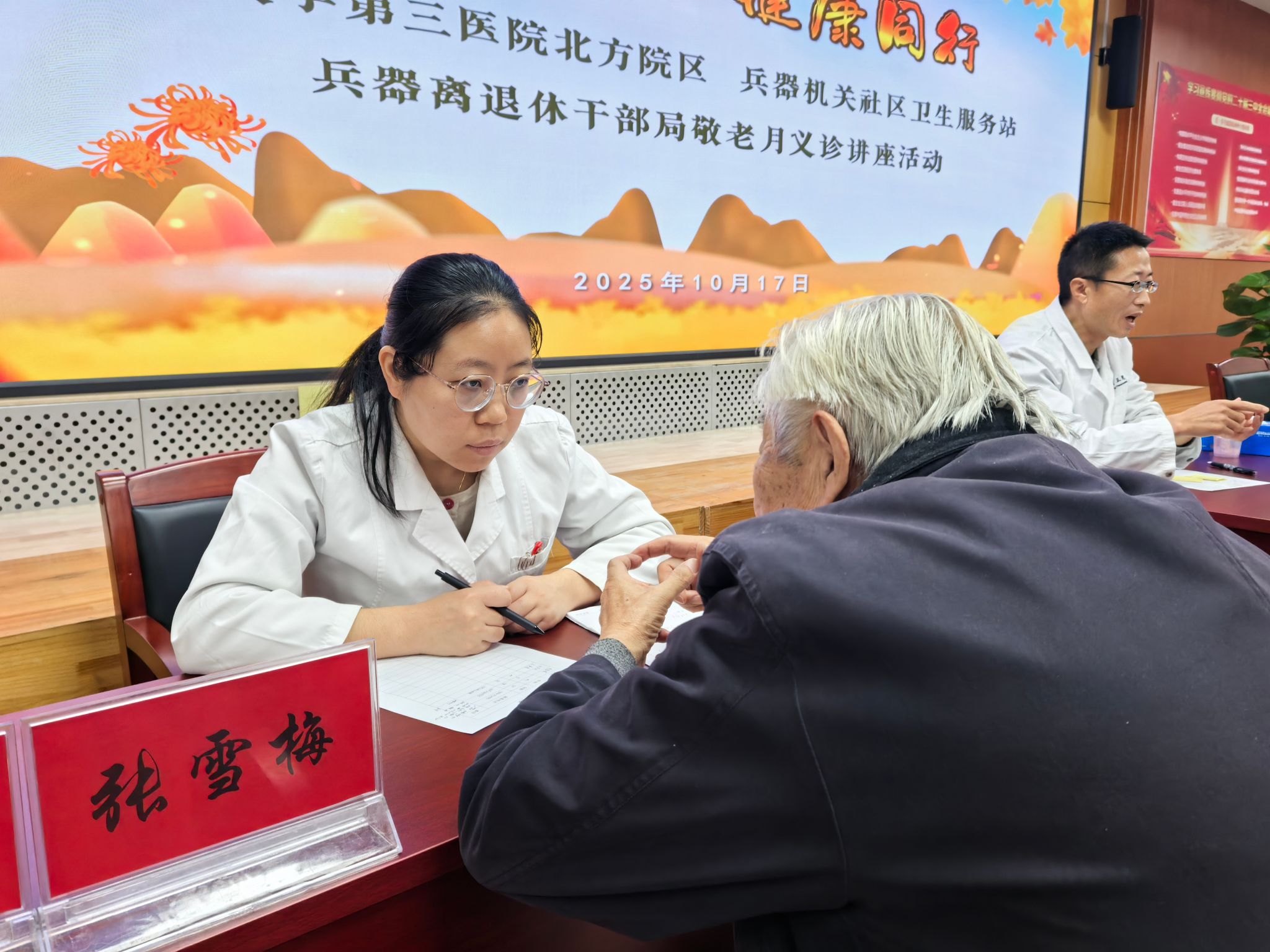 2025年10月17日,内分泌科主治医师张雪梅、护士长张文慧代表内分泌科参加北方院区组织的“情暖兵器、健康同行”敬老月义诊活动。张雪梅医生带来了关于血糖监测新技术的科普授课,受到在场老年朋友的热烈欢迎。张文慧护士长针对糖尿病一站式诊疗中心全程管理模式进行了介绍。让现场的老年朋友对糖尿病综合管理有了更加深刻的认识。授课结束后,张雪梅医生为现场50余名老年人进行了义诊和答疑,得到老年朋友的高度认可。
