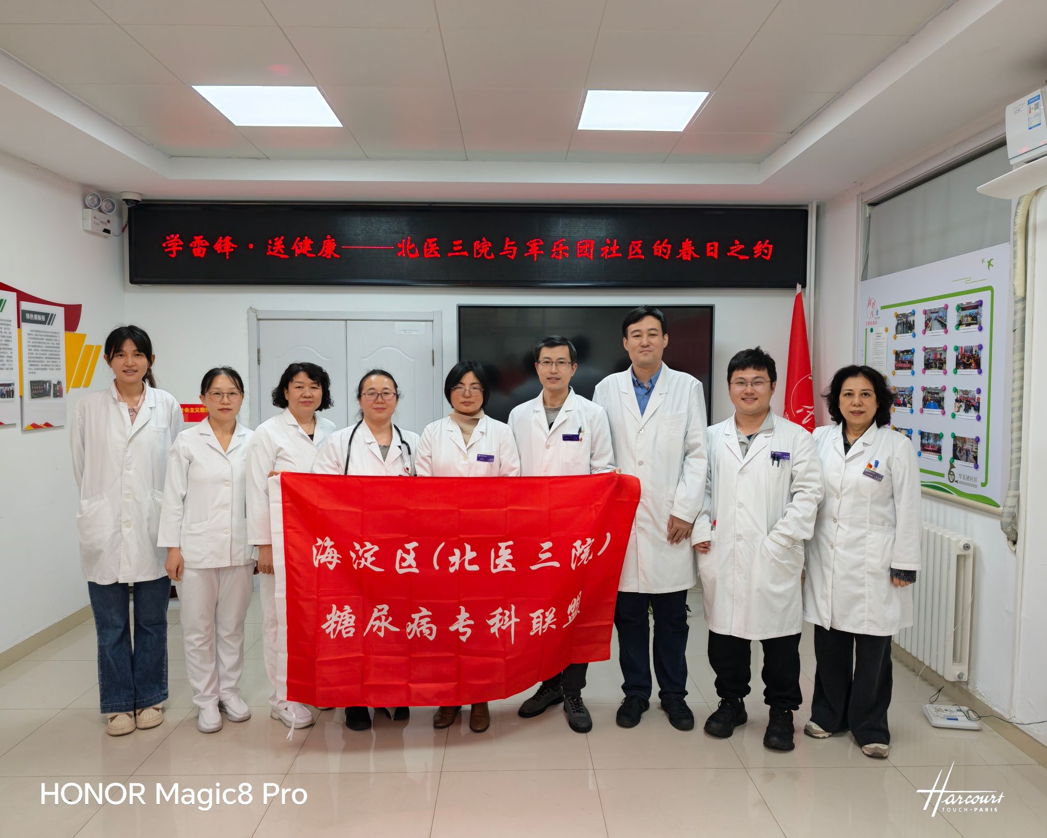 2026年3月5日是第63个学雷锋纪念日,为弘扬雷锋精神,内分泌科医师陈斯、护士长张文慧到军乐团社区参加了由北医三院北方院区举行的大型义诊咨询活动。为社区80余名居民进行了义诊及血糖检测,对于血糖异常的居民给予了健康建议,并协助其到北医三院糖尿病一站式诊疗中心进行进一步诊疗,受到居民的一致好评。