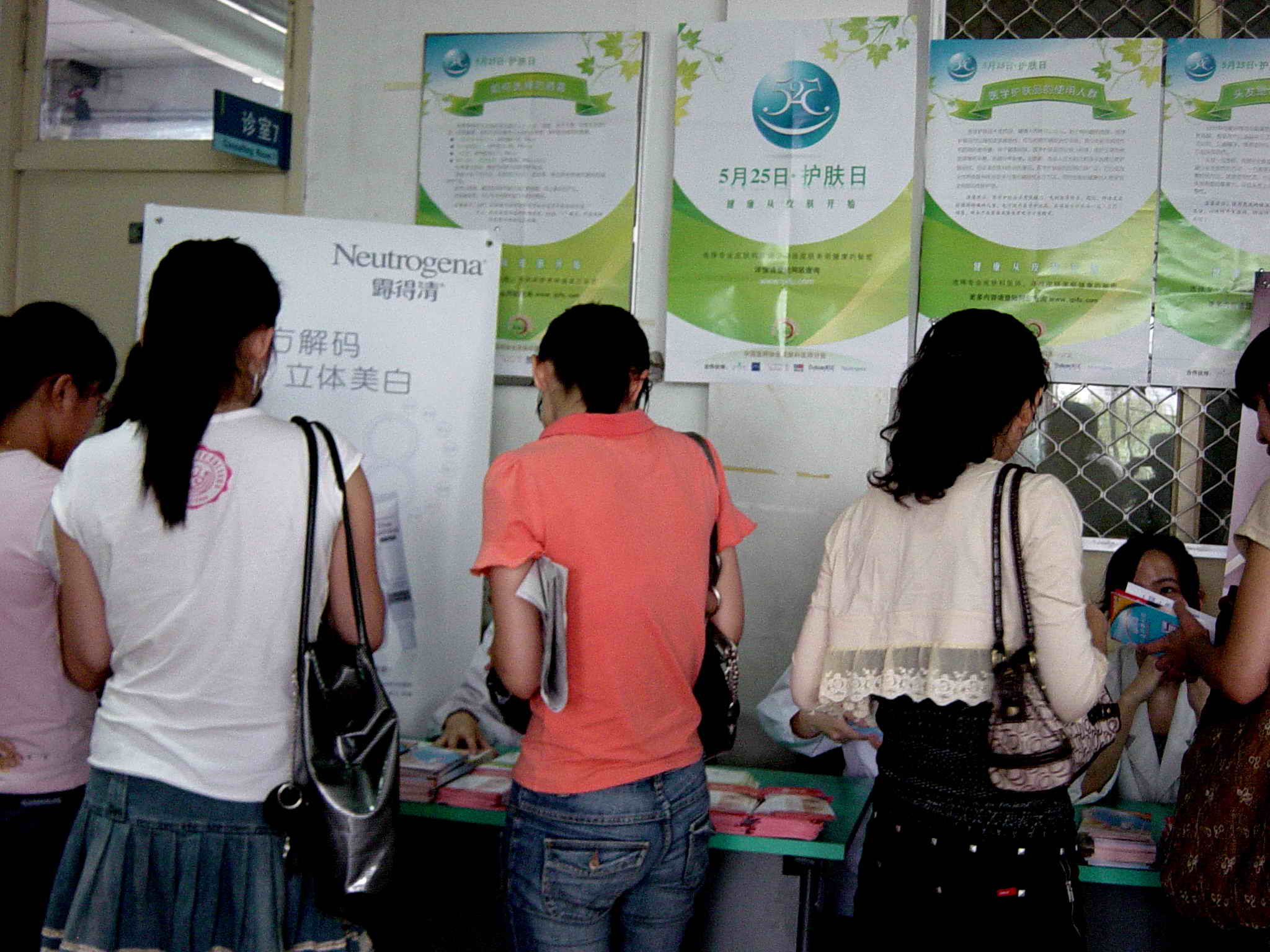 6月28日在我院皮肤科门诊开展一次由中国医师协会皮肤科医师分会主办的“2008护肤日全国医院义诊咨询活动”。中国医师协会皮肤科分会于2007年牵头倡议成立了全国“5.25护肤日”,由于受地震灾害影响,因故推迟。本次活动的主题为“健康从皮肤开始——选择专业皮肤科医师,寻找皮肤美丽健康的秘密”,由我院皮肤科姜薇、曹源、郭金竹和李春婷医生义诊,向广大患者及群众宣传护肤日,并就常见皮肤病、白癜风、过敏性皮肤病、美白、光敏、毛细血管扩张等肌肤问题展开义诊同时发放相关护肤知识材料。另外,本次活动也推出“如何选择防晒霜、头发是否也需要防晒、医学护肤品的使用人群”等内容的宣传海报,使更多患者和群众了解相关的护肤常识。受到在场患者和群众的广泛好评。