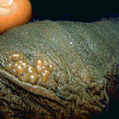 1.显性感染潜伏期为l-15天,皮报早期为数个或成群红色小丘疹、小水疱或丘疱疹,基底发红。水疱破裂易形成糜烂和溃疡,皮损区疼痛。皮损好发于男性的阴茎、龟头、肛周及女性的阴唇、阴道、宫颈及尿道。一般经l-4周皮损结痂消褪。