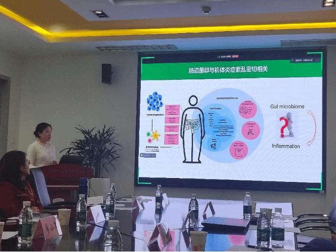农大食品学院团队介绍了炎症性肠病(IBD)与肠道菌群失调的密切关系,并分享了通过膳食调控肠道菌群平衡以缓解炎症的研究成果。北医三院团队则针对性分享了肠道菌群在胰腺癌发生发展中的作用,期待通过肠道菌群的研究进一步改善胰腺癌管理策略。双方重点讨论了肠道活性物质(如短链脂肪酸、植物多酚)在改善肠道屏障功能和调节免疫炎症反应中的作用。此外,团队还探讨了益生菌和膳食纤维干预的潜在临床应用,并建议通过联合开展临床研究,验证这些干预措施在IBD、便秘等临床问题中的实际效果。