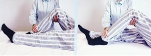 • 主动活动:下肢伸展,大腿放松,缓缓勾起脚尖,尽量使脚尖朝向自己,至最大限度时保持5秒钟,然后脚尖缓缓下压,至最大限度时保持5秒钟后放松,一组动作完成。稍休息后可以进行下一组动作。反复的屈伸膝关节。最好每小时练习5分钟,一天5-8次。