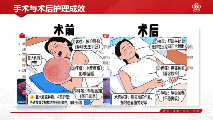 Ø 全程化身心护理:强调对乳腺巨大肿瘤患者从诊断、治疗到康复全过程的心理支持与精细化护理路径建设。