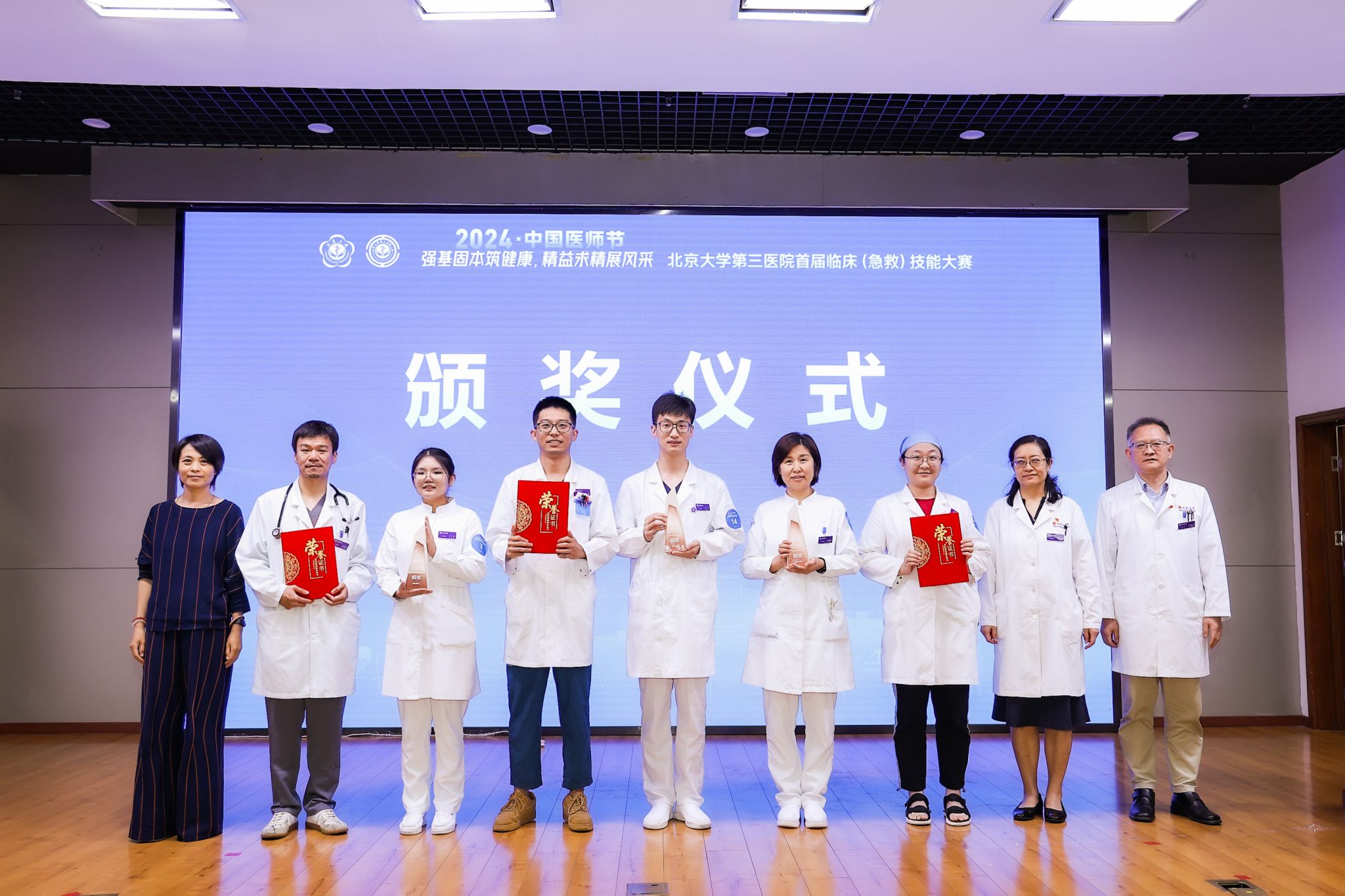 2024年8月15日,在第7个中国医师节即将到来之际,北京大学第三医院举办了首届临床(急救)技能大赛决赛,来自不同科室的14个团队进入了决赛。神经内科团队通过层层比赛,最终取得了铜奖的好成绩。强基固本筑健康、精益求精展风采, 本次大赛旨在全面贯彻党的二十大和中国工会十八大精神,大力弘扬劳模精神、劳动精神、工匠精神,聚焦高质量发展这个首要任务,深入开展“建功‘十四五’、奋进新征程”主题劳动和技能竞赛,夯实医务人员基本技能,提高医务人员综合素质,并在全院范围内营造比学赶超的浓厚氛围。大赛的顺利举办,进一步提升了医务人员的临床专业技能与团队协作水平,促进医院医疗质量不断提升,守护患者安全,也为医院高质量新文化建设打造又一项特色品牌,更是北医三院工会积极践行工会四大职能的生动体现。