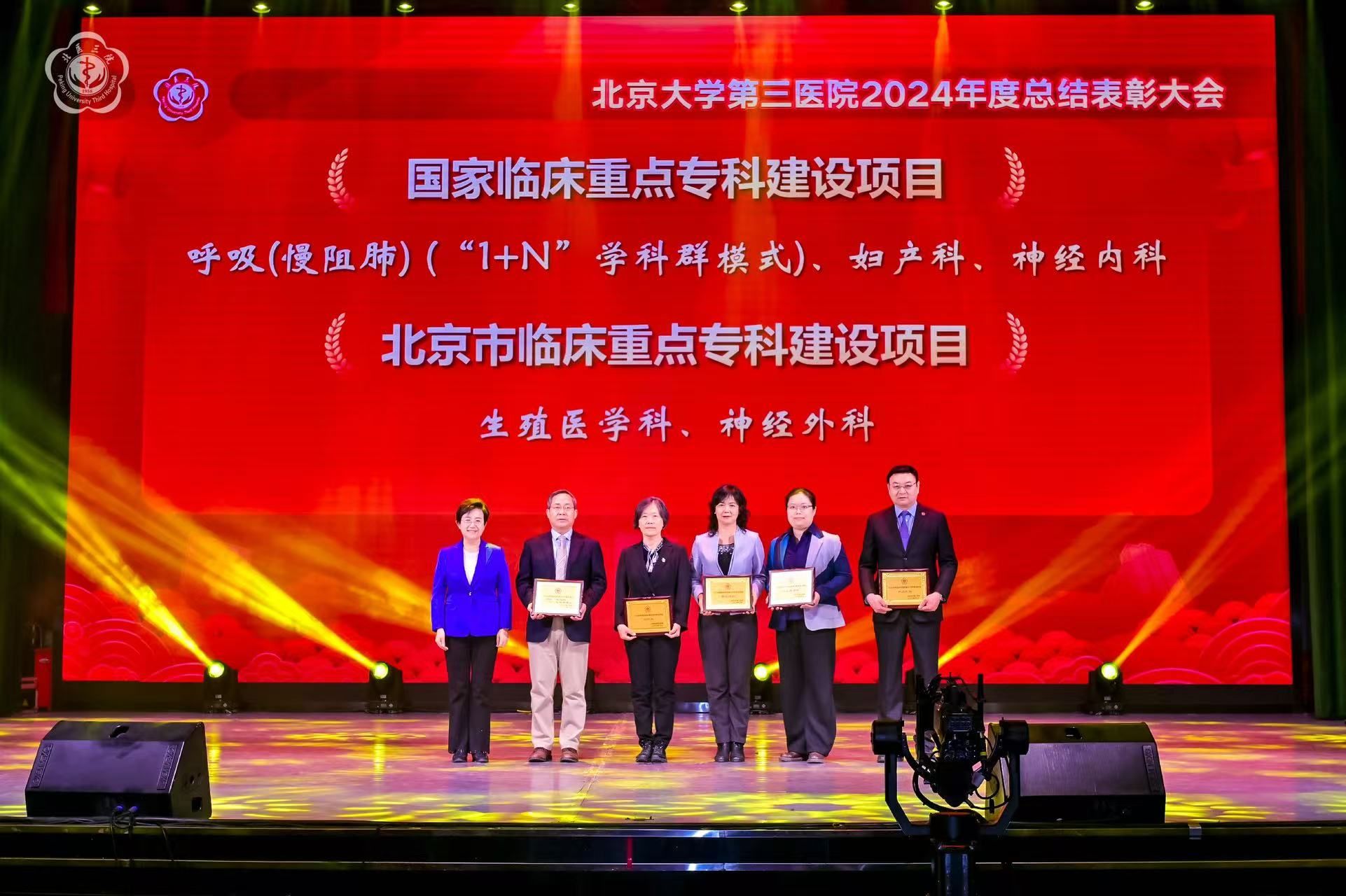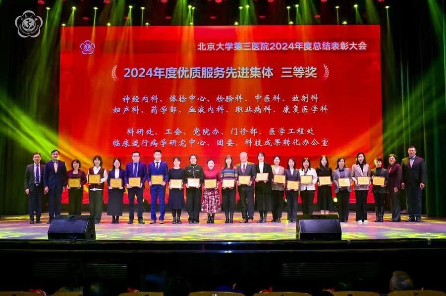 2025年1月10日,北京大学第三医院2024年度总结表彰大会在眼科楼报告厅召开。经过2024年神经内科全体人员的不懈努力,我科斩获多项嘉奖,在医教研方面均获得佳绩:我科获得国家临床重点专科建设项目,2024年优质服务先进集体三等奖,我科赵晨主治医师获得2023年度全国“百佳病案”。我科叶珊副主任医师团队获得第四届全国高校教师教学创新大赛二等奖和第四届北京高校教师教学创新大赛一等奖,赵晨主治医师获得北京大学第二十三届青年教师教学基本功比赛一等奖,樊东升教授团队获得2024年度科研优秀奖高水平科研成果奖,何及副教授获得2024年度优秀人才奖、科研成果个人奖。