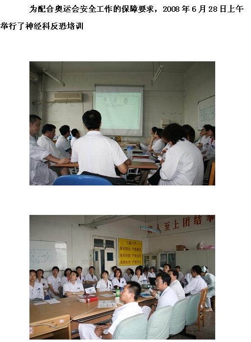 为配合奥运会安全工作的保障要求,2008年6月28日上午举行了神经科反恐培训