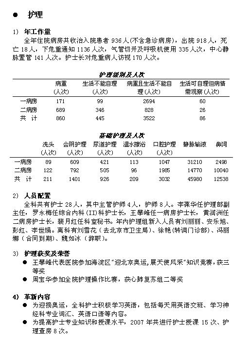 2007年护理工作小结