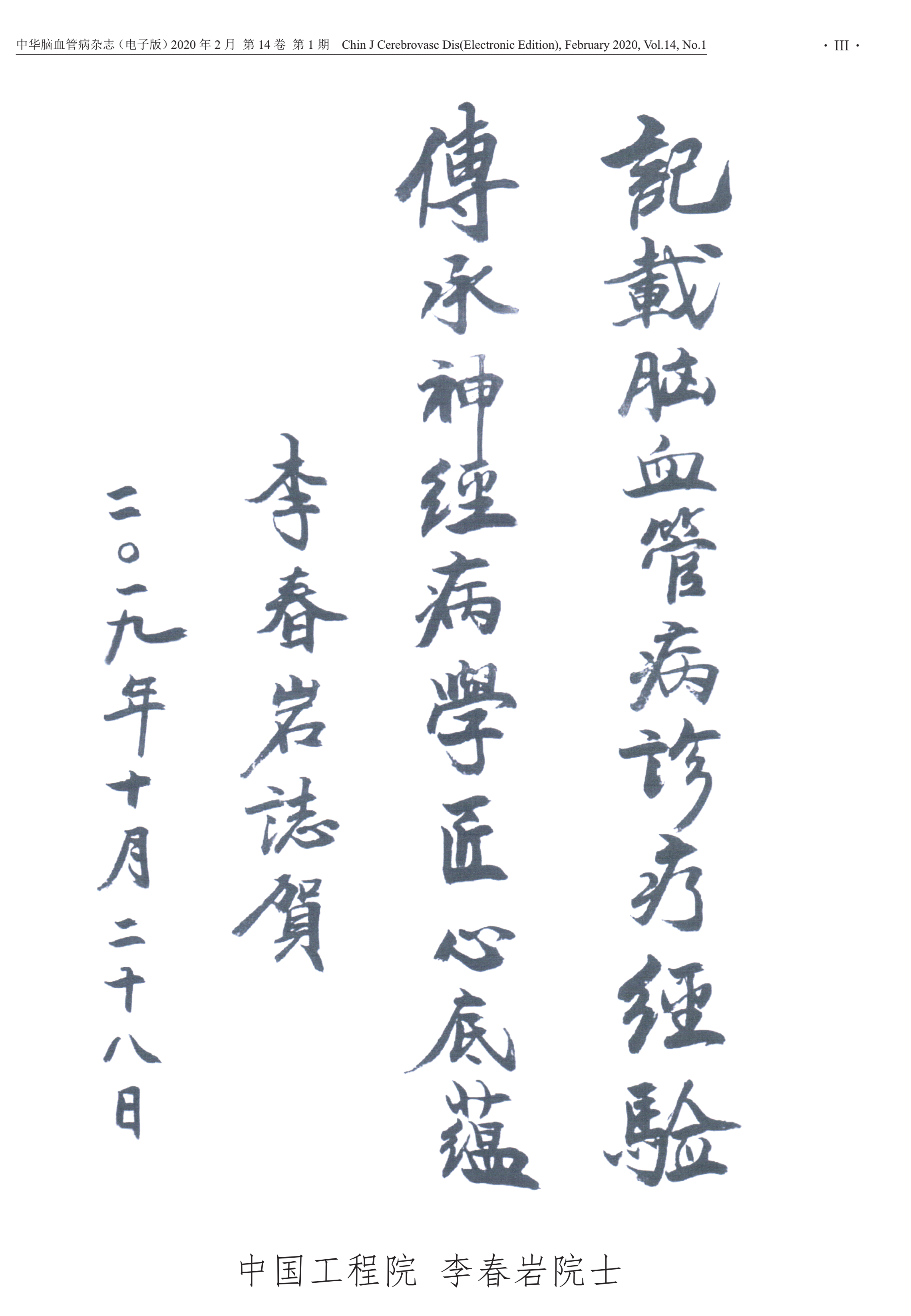 李春岩院士为《中华脑血管病杂志(电子版)》题词