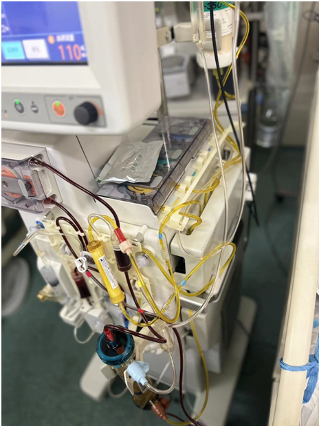 2023年3月至今,我院肾内科血液透析室王松主任、毕书红副教授团队已成功开展血浆胆红素吸附治疗,目前已成功救治3位高胆红素血症、肝功能衰竭患者。血浆胆红素吸附治疗后,患者食欲、皮肤黄染等临床情况明显改善,血胆红素水平下降明显,其中一例患者在临床情况改善后成功接受了外科手术治疗,有一例患者来院时昏迷,血总胆红素水平高达500μmol/L,经过5次胆红素吸附治疗后血胆红素水平明显下降,患者神志恢复。血浆胆红素吸附治疗为危重症患者的抢救提供了机会和赢得了宝贵的抢救时间,改善了患者生活质量,延长了患者寿命。