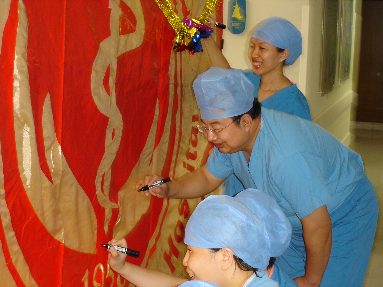 为迎接北医三院五十年华诞,手术室在手术科室中发起了“辉煌五十载,共圆三院梦”签名活动,来自手术室、骨科、运动医学、麻醉科、普外科、妇产科、泌尿科、成型科、脑外科、胸外科、血管外科、病理科等十二个科室的二百余名医护人员和手术室医辅中心的医辅员们纷纷写下自己的祝福和感言。共同表达了对北医三院的忠心祝福。此次活动得到了陈仲强院长和刘晓光副院长以及各手术科室的大力支持,充分表现了三院人团结协作、勇争第一、继往开来、共创佳绩的精神面貌。为配合医院五十周年大型文艺演出,手术室在院工会和科领导的大力支持下经过2个多月周末加班的排练,成功配合著名歌唱家闫维文的歌伴舞节目〈〈用你的辉煌呵护生命〉〉,得到了大家的好评!