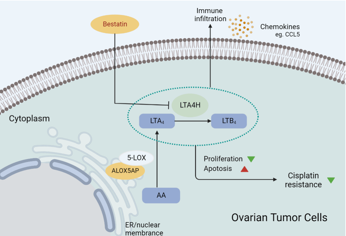 本研究提出了一种基于PUFA代谢基因的卵巢癌患者预后预测模型,并筛选出关键代谢靶点LTA4H,发现了其对于肿瘤细胞生长及免疫微环境的调控作用,为LTA4H作为一种卵巢癌治疗的潜在靶点提供了新的线索。