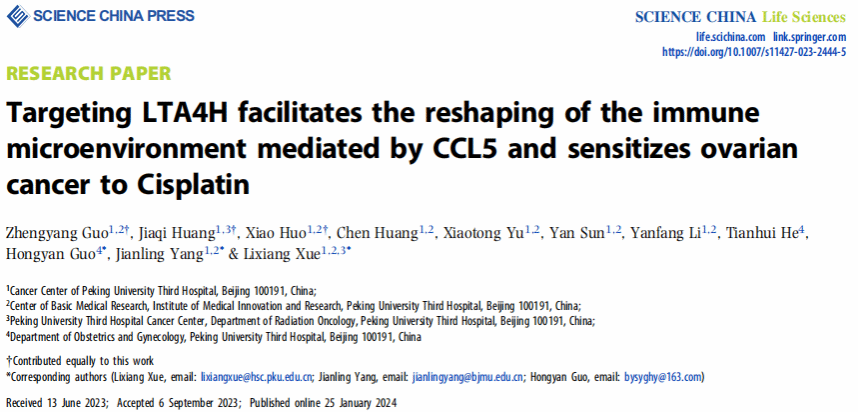 北京大学第三医院肿瘤中心、医学创新研究院基础医学研究中心的郭正阳、黄架旗、霍霄为该文章的第一作者,薛丽香、杨建岭和妇产科郭红燕为通讯作者。该研究成果得到国家自然科学基金和北京市自然科学基金等项目的资助。