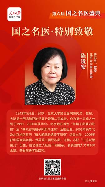 推举医者榜样,引领尊医舆论,促进人民健康。9月26日,由人民日报健康客户端主办的第六届国之名医盛典在人民日报社举行,并发布第六届国之名医系列榜单,来自26个省份161家医院的305位优秀医生上榜。我院妇科陈贵安教授入选第六届国之名医·特别致敬榜单。