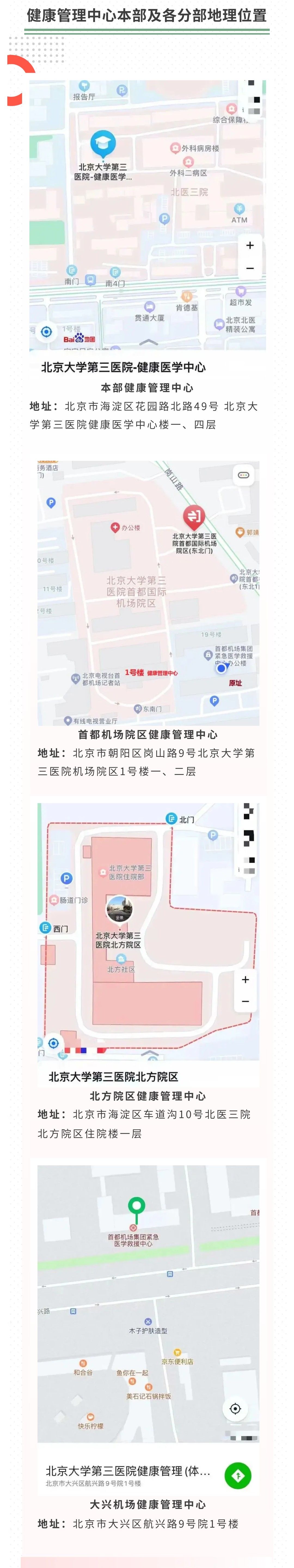 健康管理中心本部及各分部地理位置