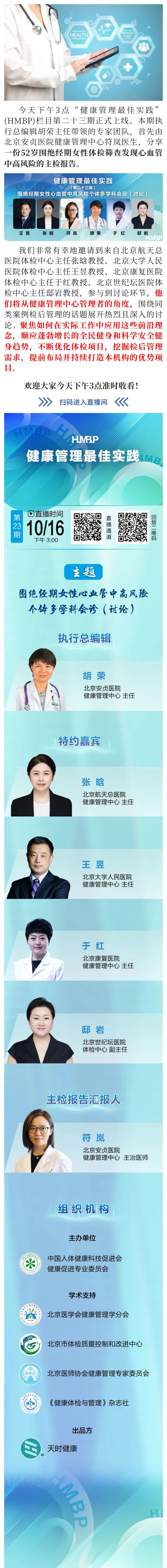 15:00直播|HMBP-主检报告解析:专家讨论-围绝经期女性心血管中高风险个体的多学科会诊