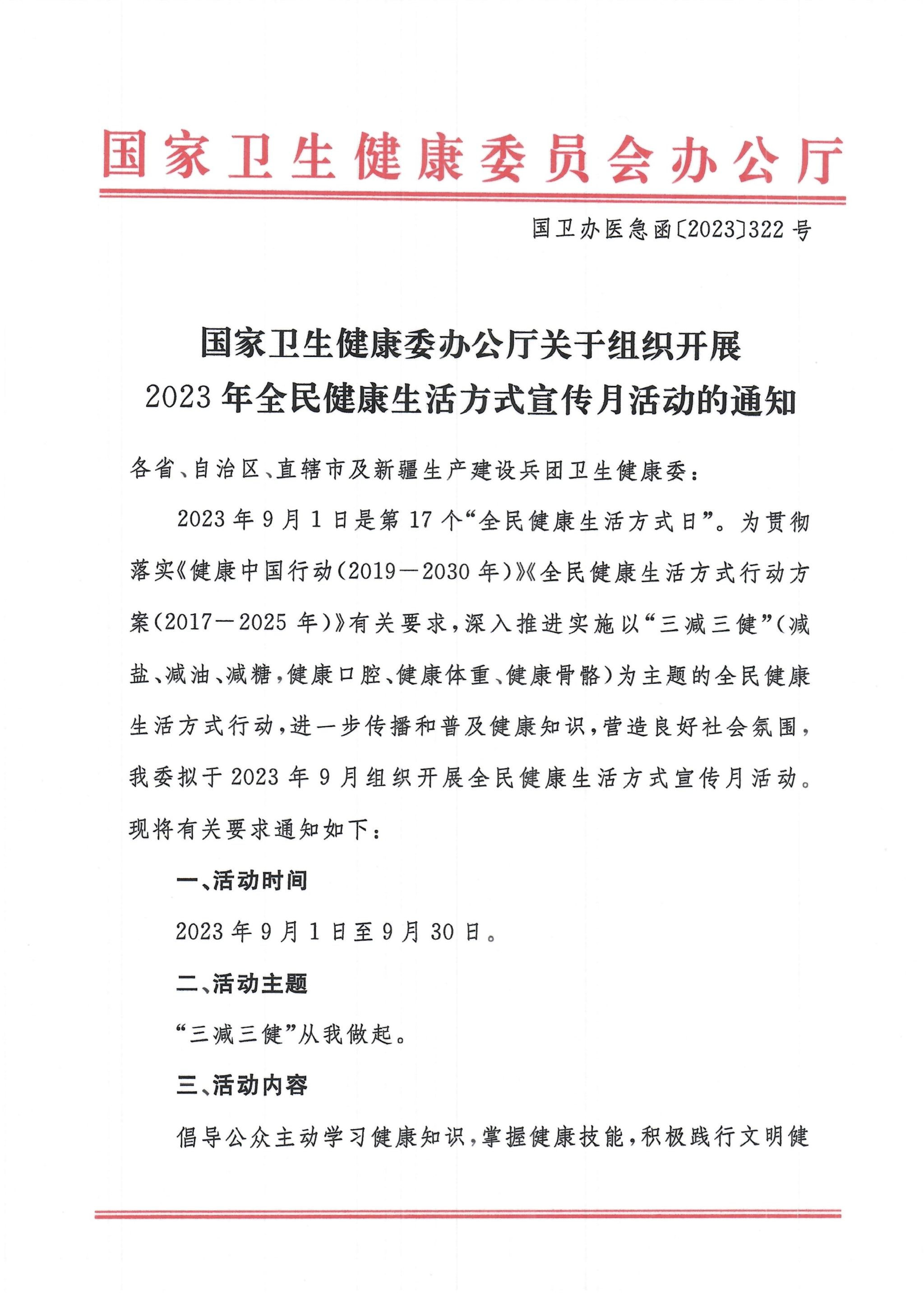 附:《国家卫生健康委办公厅关于组织开展 2023 年全民健康生活方式宣传月活动的通知》