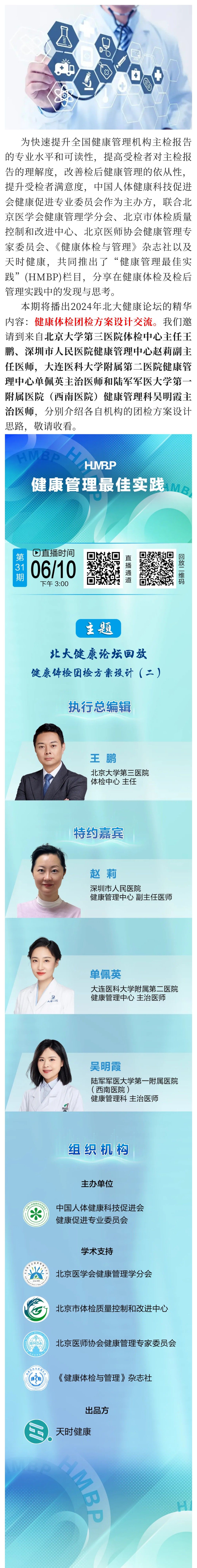 直播预告|HMBP北大健康论坛特别节目:健康体检团检方案设计(二)