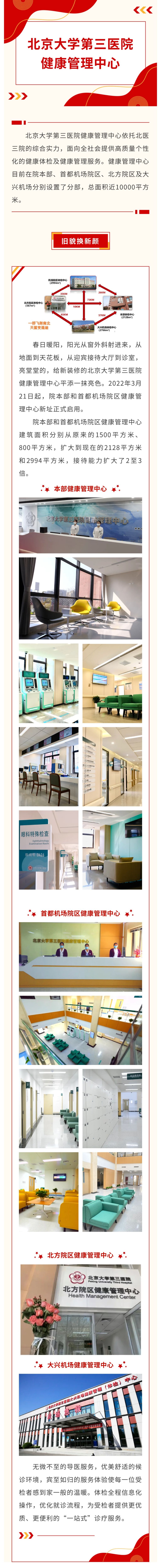 春日暖阳,阳光从窗外斜射进来,从地面到天花板,从迎宾接待大厅到诊室,亮堂堂的,给新装修的北京大学第三医院健康管理中心平添一抹亮色。2022年3月21日起,院本部和首都国际机场院区健康管理中心新址正式启用。