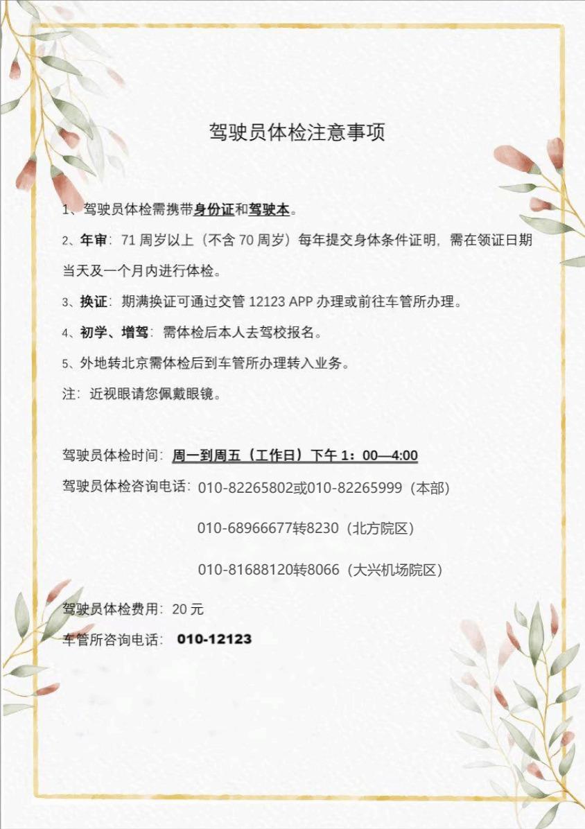 北京大学第三医院健康管理中心驾驶员体检注意事项