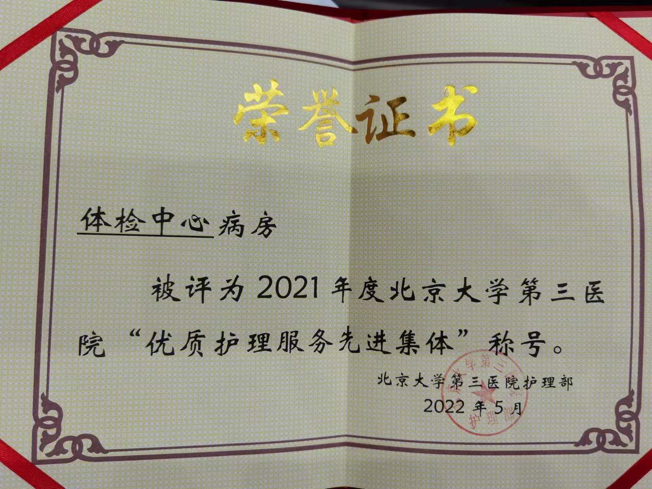 健康管理中心被评为2021年度北医三院“优质护理服务先进集体”称号
