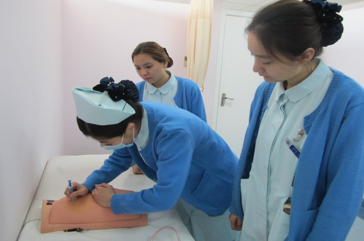 护士十项基本操作是每个临床护士必须掌握的。体检中心根据护士年资安排操作培训内容。下图为体检中心低年资护士正在练习皮内注射和肌肉注射法。