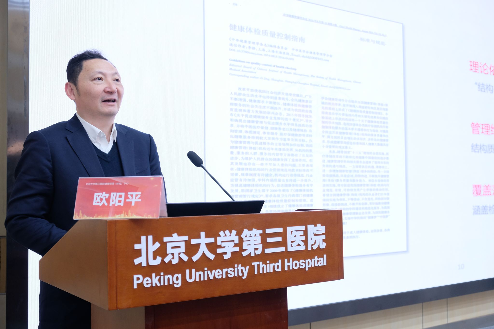 欧阳平主任以“基于质控体系的健康体检流程优化”为主题,介绍了体检质控体系的主任、基本思路和重点环节。以南方医院健康管理科的实践为例,从检前预约,再到检中导诊、体检和服务流程设计、培训、监督和激励机制、落实流程监督及重点环节质控等服务流程,强调了体检质量控制的重要性与科学性。