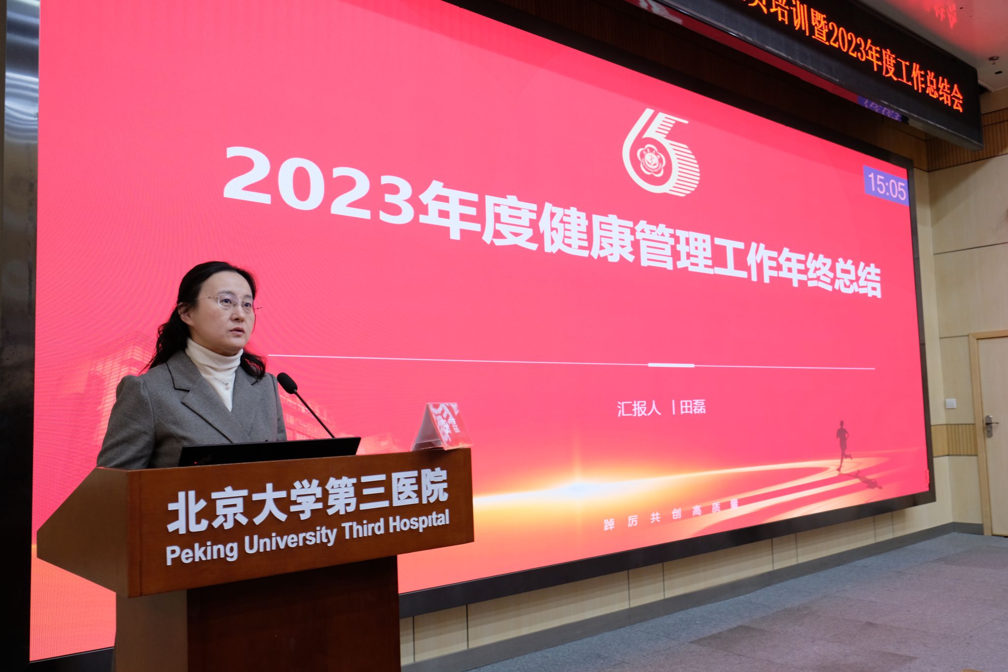 1月28日下午,北京大学第三医院健康管理中心举行2023年度总结表彰会。北医三院机场院区院长、健康管理中心主任王鹏,党支部书记、纪检委员、科护士长车颖,副主任赵威、吴华、王宏利,副主任医师田磊,各分部护士长,以及院本部、首都机场院区、北方院区、大兴机场分部健康管理中心四个部门全体员工欢聚一堂,总结过往,展望未来。吴华副主任担任主持。