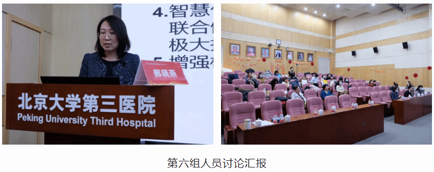 工作汇报结束后,与会人员分为六组进行热烈讨论,从提升科室运营能力、科研水平提高策略、健康管理工作如何开展、提升工作质量和服务能力等方面为科室发展建言献策,并由各组代表汇总汇报。健康管理中心副主任王宏利担任主持。