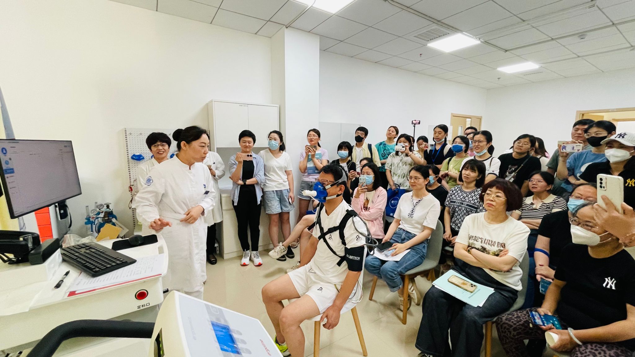 “2023•北大健康论坛”精彩不断,继运动与干预技能理论培训之后,6月18日上午,一场别开生面的运动功能系统评估和心肺运动试验实操课在北京大学第三医院首都机场院区健康管理中心鸣锣开“练”!