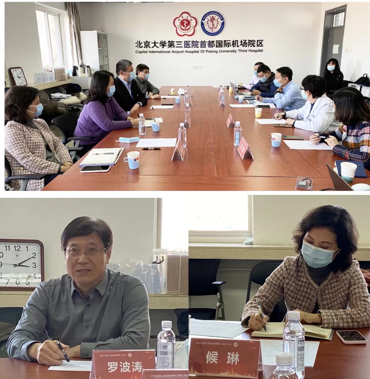1月26日下午,中国国际航空股份有限公司员工健康管理项目2022年首次沟通会在北京大学第三医院首都国际机场院区顺利召开。国航综合保障部书记黄强,国航航卫中心主任罗波涛、赵进,国航航卫中心保健办主任候琳,北医三院首都国际机场院区院长、健康管理(体检)中心主任王鹏,北医三院健康管理(体检)中心副主任吴华,北医三院健康管理(体检)中心党支部书记、科护士长车颖,北医三院副主任医师田磊、健康管理软件项目工程经理黄悦出席会议。