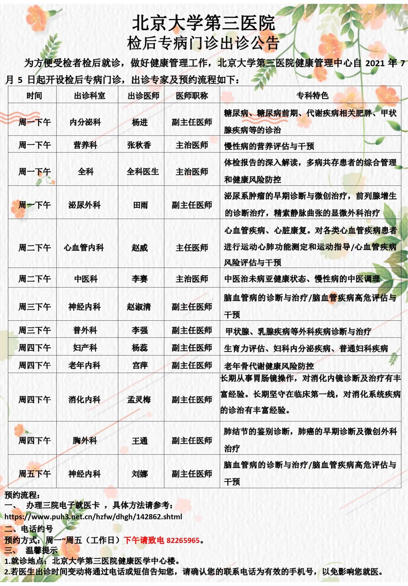 为方便受检者检后就诊,做好健康管理工作,北医三院健康管理中心与内分泌科、营养科、神经内科、心血管内科、普通外科、老年内科、妇产科、消化内科、中医科等临床重点专科联动联通。