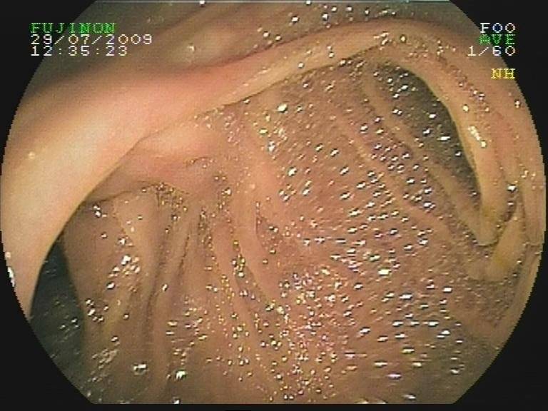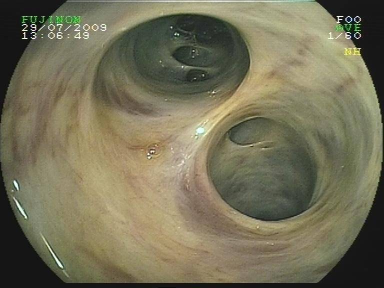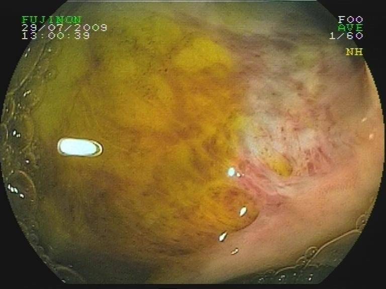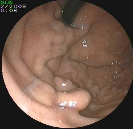 小肠镜检查:胆肠吻合口多发血管扩张,空肠吻合口息肉。
