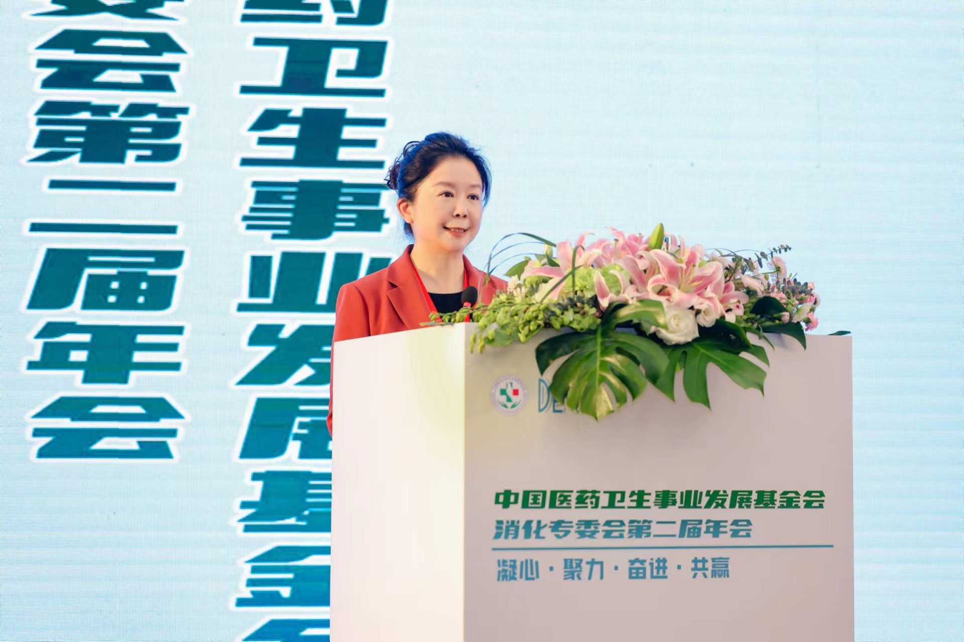 王丹理事长表示,消化专委会近百名(94位)专家、顾问,来自于全国33个城市78家医院,具有广泛代表性和学科权威性,消化专委会前景广阔,未来可期。她对专委会的建设和发展提出了三点建议和希望。一是要突出公益性的主导作用。专委会要始终把公益性放在第一位,通过整合融合多方资源,支持科研创新、人员培训以及学术交流,为提高我国消化医科诊疗水平提供支撑,为医务人员和爱心人士实现公益梦想提供平台,使更多的患者能够享受到同质化的优质诊疗服务。二是要坚持依法依规开展活动。始终坚持依据党和国家有关政策法规、基金会《章程》《专家委员会管理办法》等开展活动,这是确保专委会行稳致远的刚性要求。三是要构建科学高效的管理和工作模式。要不断健全完善运筹管理、沟通协调和服务机制,为专委会的有效运行提供保障;要按照“主委负责、民主协商”原则开展工作,既要发挥好主委的统筹和主导作用,又要注意充分调动和发挥各常委、委员的主观能动性和专业特长,不断吸纳更多的学科专家加入,真正形成合力;要坚持五湖四海、开门办会,构建资源整合机制,吸引更多的企业和其他社会力量参与进来;要加强工作的前瞻性和计划性,高起点、高标准编制工作规划计划,高质量筹划和组织好每一次活动。