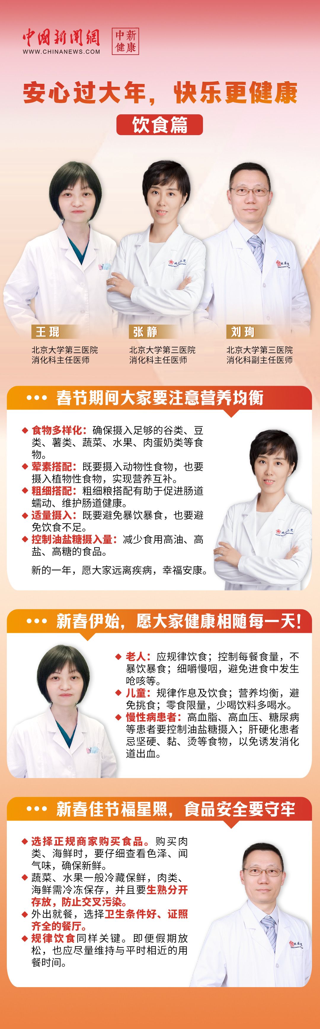 ——【中国新闻网】1 月 29 日,消化科王琨、张静、刘珣医生科普健康 过春节,如何保证饮食有方。