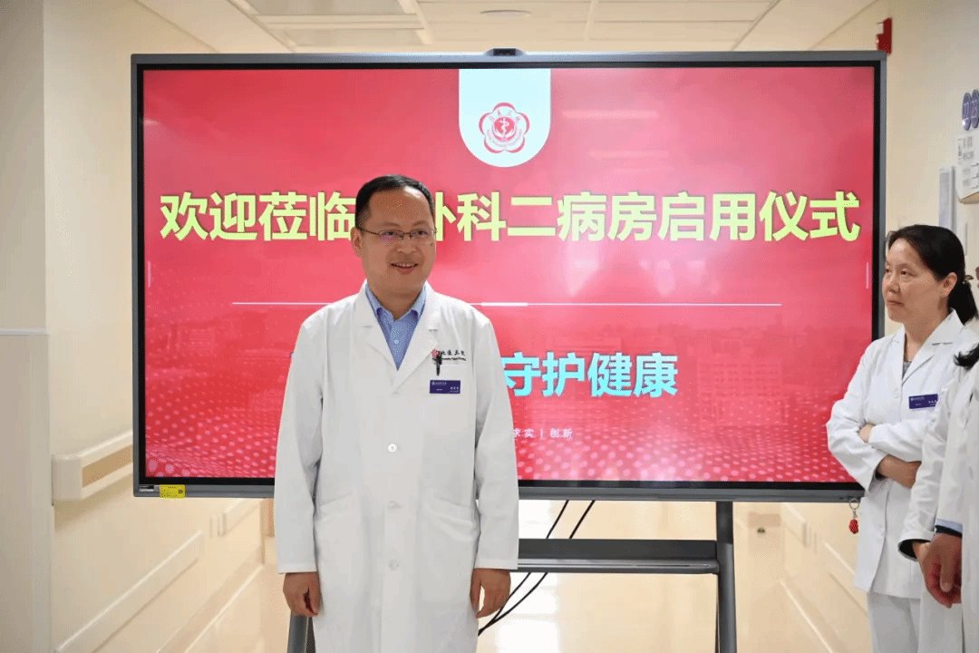 启用当日,科室举行了简短而庄重的启用仪式。北医三院副院长马青变、海淀北部院区院长姜宇、副院长孙阿萍,医务处副处长兼海淀北部院区党政办公室负责人吴昕霞,护理部副主任兼海淀北部院区医政管理办负责人苏春燕,前任胸外科主任刘丹丹,现任胸外科主任强光亮等出席,共同见证这一重要时刻。仪式由胸外科二病房护士长韩立云主持。
