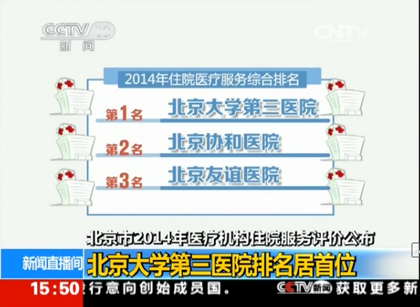 【CCTV—新闻直播间】北京市2014年医疗机构住院服务评价公布 北京大学第三医院排名居首位