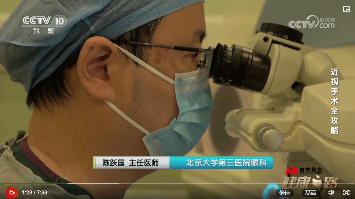 ——【CCTV10】6月29日《健康之路》栏目,眼科陈跃国医生进行近视眼手术演示。链接地址:http://tv.cctv.cn/2023/06/29/VIDEMgtqu1qFlc0QzG9bALFP230629.shtml