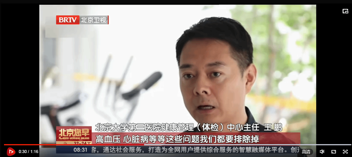——【BRTV1】8 月 9 日《北京您早》栏目,体检中心王鹏主任表示,科学健身应该从运动能力测评开始。链接地址:https://news.cctv.com/2023/08/09/VIDEZdX1Qvzx6gVtXWl2sJ0N230809.shtml