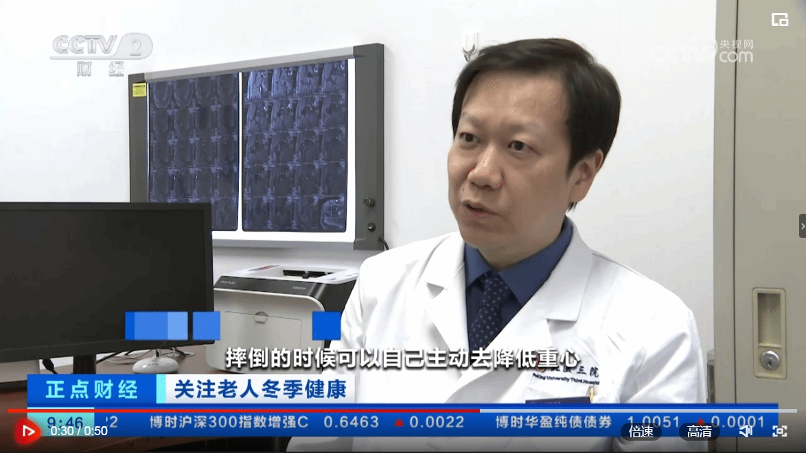 ——1 月 9 日,【CCTV2】《正点财经》【CCTV13】《新闻直播间》,运动医学科徐雁医生科普老人摔倒时髋部骨折影响大,以及应该如何自我保护防止摔骨折。链接地址:https://tv.cctv.com/2024/01/09/VIDEoEVPXH8rqcoKy731xiaO240109.shtml?spm=C22284.P9utkPeyBf8O.EvUC0pzuLYNy.11